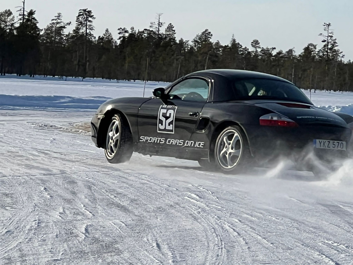 Bevor es auf die Strecke ging, gab es noch eine kurze theoretische Einweisung von Driftprofi Uwe. Hmm, zwischen Theorie und Praxis ist wie so oft auch hier ein kleiner aber feiner Unterschied, doch es ist ja auch noch kein Meister vom Himmel gefallen. Um überhaupt erstmal ein Gefühl für das Fahren auf Eis zu bekommen, waren die ersten 3-4 Runden sehr gemütlich und ohne driften. Es verteilten sich immer 2 Leute auf einen Boxter, gewechselt wurde dann wie man wollte.