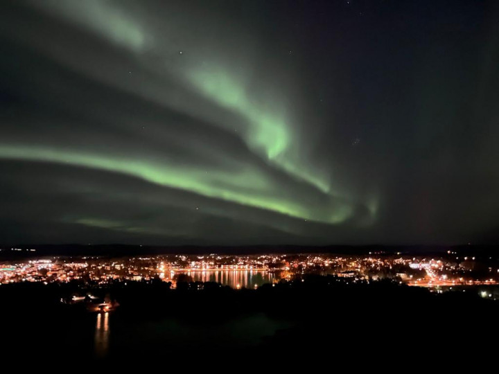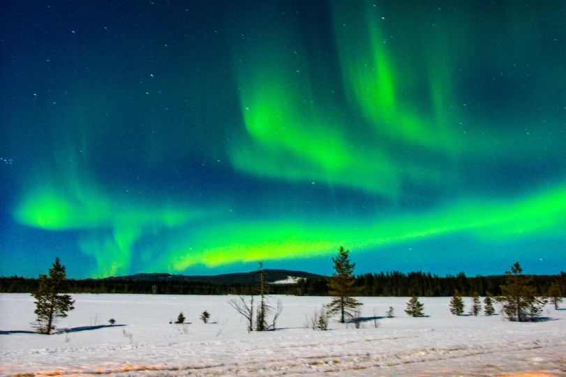 Die Kamera inkl. Stativ war gepackt, die Akkus alle geladen…wir waren bereit. Einige von uns hatten sich auch diverse Aurora Apps heruntergeladen und so wurden beim Abendessen erstmal die Aussichten geprüft. Am dritten Abend sollte es dann soweit sein. Mit unseren Guides ging es nach dem Abendessen auf Polarlichter-Jagd. Raus aus dem Städtchen, weg von allen Lichtquellen, rauf auf eine Aussichtsplattform. Es war sehr kalt, der Himmel war klar, doch gesehen haben wir… nichts! Sollte die App etwa nicht recht haben? Nach kurzer Beratung sind wir alle wieder in die Autos gesprungen und machten uns auf den Weg zum nächsten Spot. Und dann…ganz plötzlich…wie aus dem Nichts… fing es an. Erst war nur ein weißer Schleier am Horizont zu sehen, bevor wir die grünen Lichter tanzen sahen. Die Aurora war so stark, dass wir sie tatsächlich auch mit bloßem Auge sehen konnten. Sämtliche Kameras und Handykameras klickten um die Wette. Was für ein spektakuläres Erlebnis!